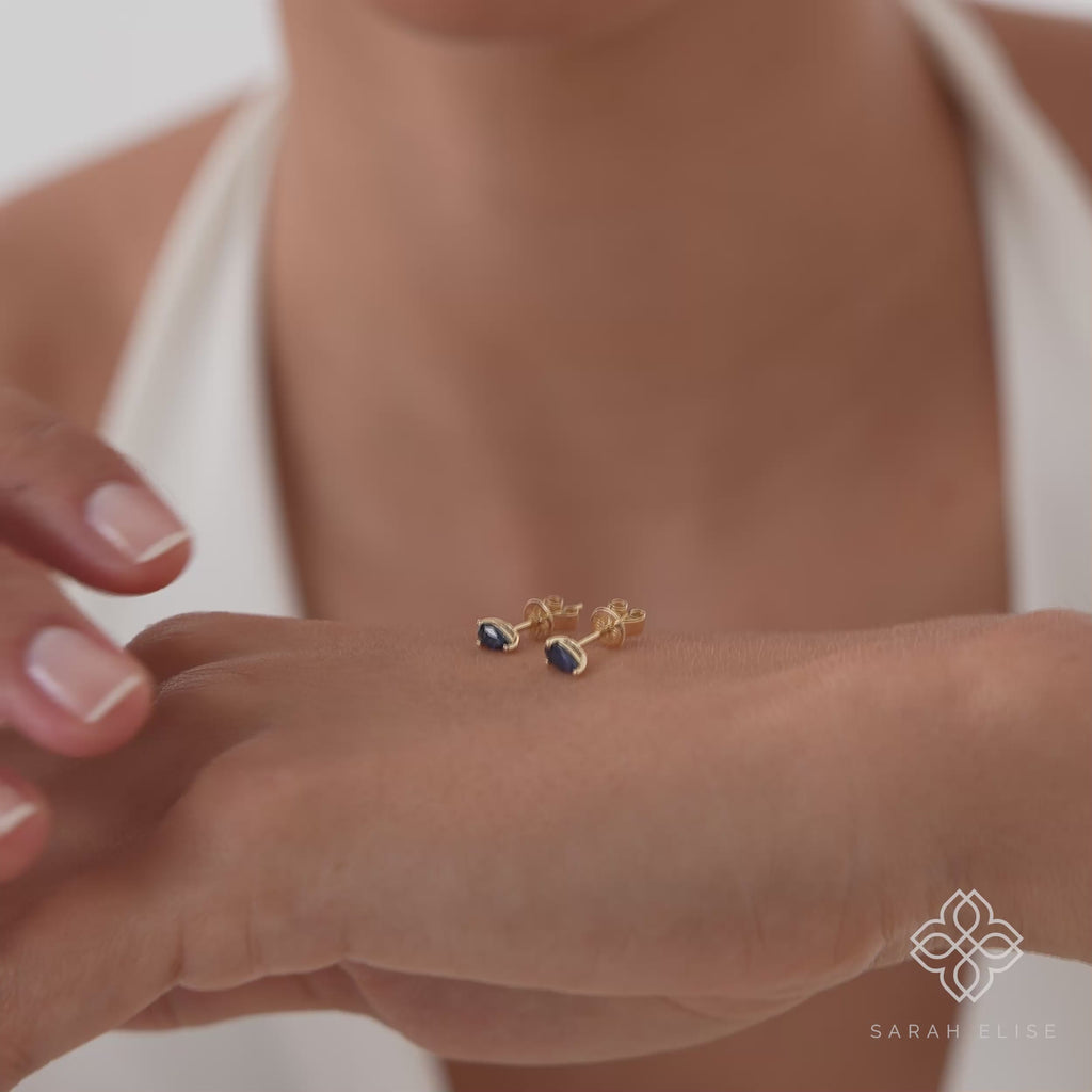 Petite Pear Cut Natural Sapphire Studs | Handmade Jewelry Skip to content
