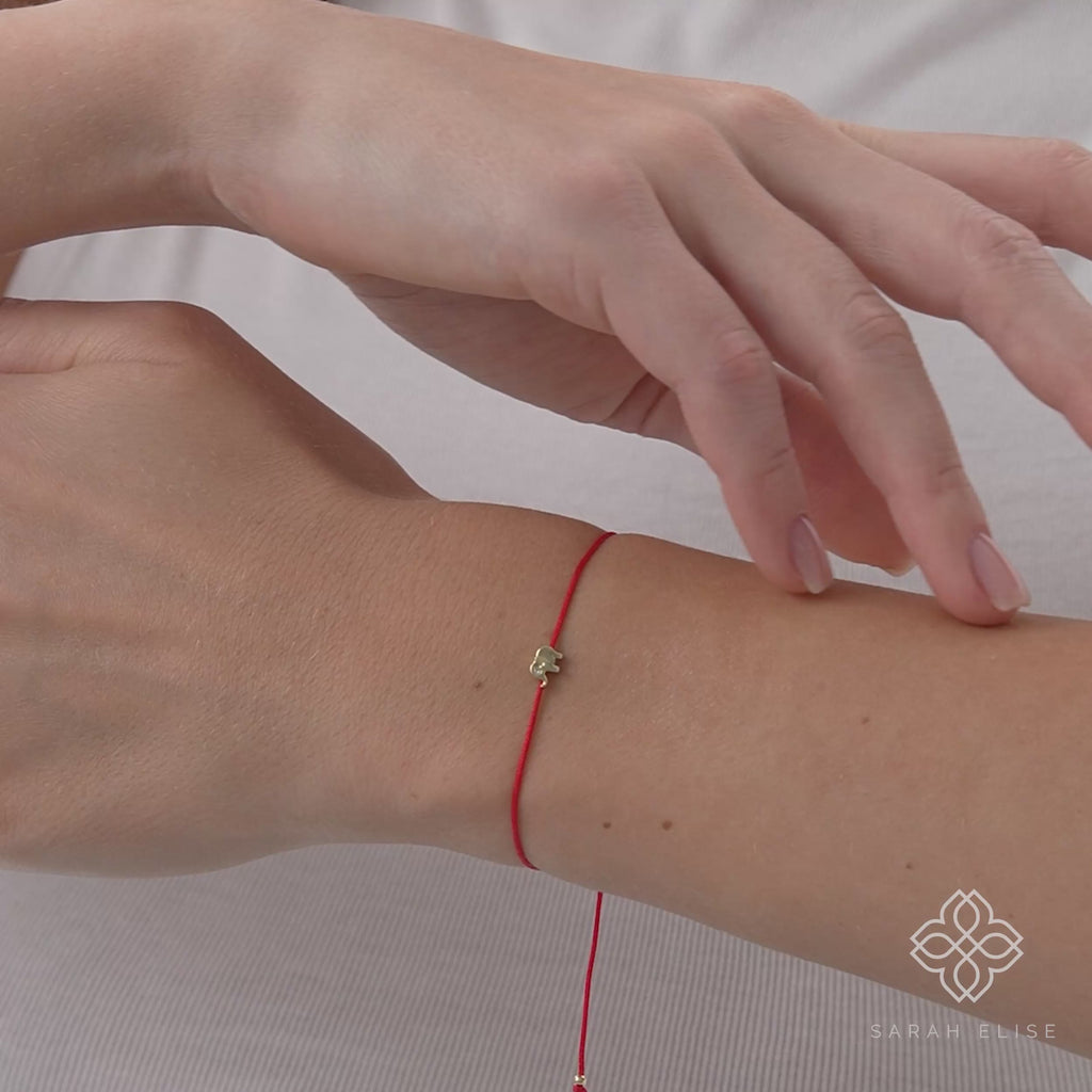 Carry the spirit of wisdom and unwavering strength with our handcrafted Solid Gold Elephant String Bracelet. Meticulously forged in your choice of solid 10k, 14k, or 18k gold, this meaningful piece features a high-polish elephant silhouette. To add a touch of eternal brilliance, the elephant is set with a shimmering round brilliant lab-grown diamond as its eye. This noble charm is integrated into a vibrant, high-durability red cord—a traditional symbol worn for protection, good fortune, and a path of smooth journeys.